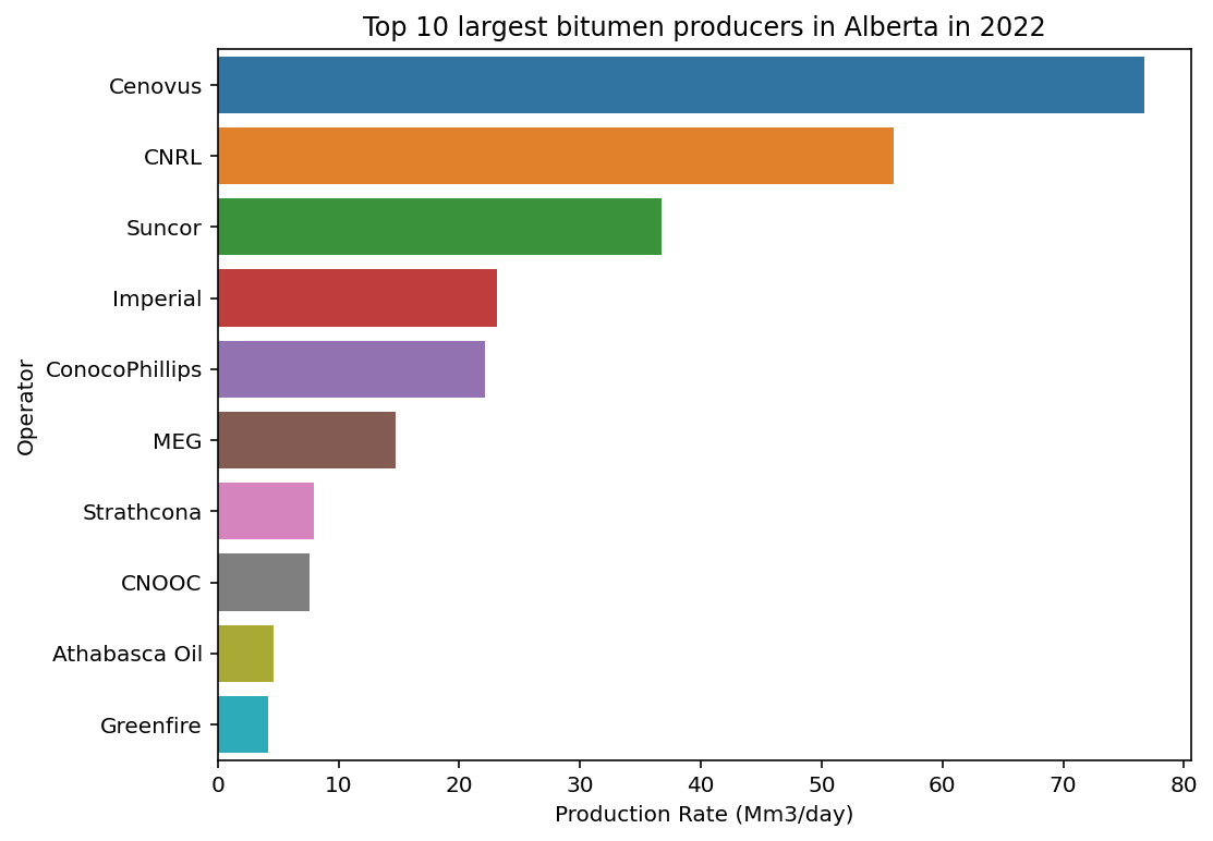 # Plot the top 10 largest bitumen producers in Alberta in 2022